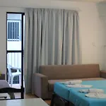 A Maos Hotel Apartments biedt de gasten een patio en een balkon, waar strijkfaciliteiten en airconditioning, samen met een flatscreen TV met satellietzenders zijn beschikbaar. Een apart toilet en een wastafel evenals een haardroger en handdoeken zijn ook in de kamers inbegrepen.